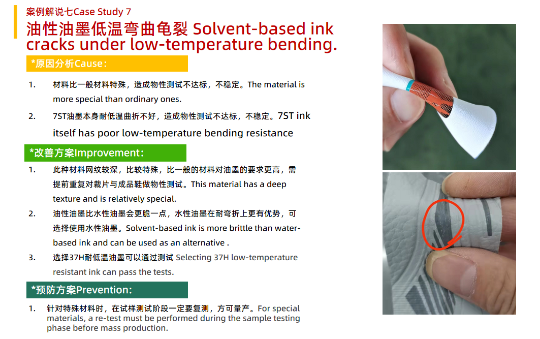 案例解说七Case Study 7 -Solvent-based ink cracks under low-temperature bending.